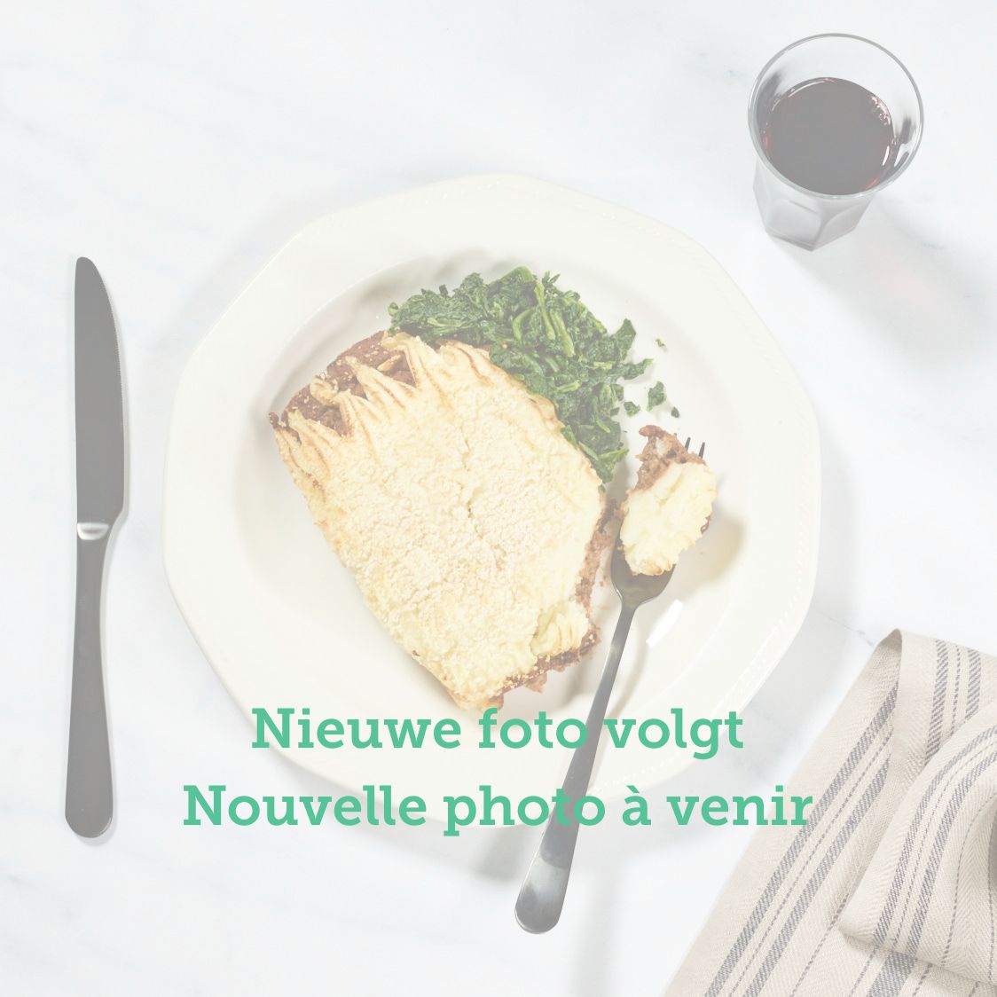 Pommes de terre 29%, carottes 19%, eau, viande de boeuf hachée 13%, tomates, oignon, CÉLERI blanc, huile de colza, miel, LAIT écrémé en poudre, jaune d'ŒUF, échalote, chapelure (farine de BLE, eau, levure, sel), amidon modifié, bouillon (maltodextrine, amidon, légumes en poudre (poireau, carottes, oignon), huile végétale (colza/tournesol), plantes aromatiques, épices (CÉLERI)), colorant: caramel, ail, poudre de poivron fumé, plantes aromatiques et épices.